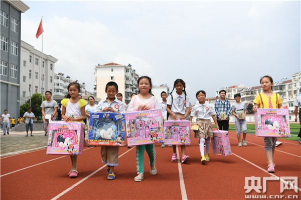 上午10時(shí)許,捐贈儀式正式開始,F(xiàn)場趕來的愛心企業(yè)和愛心人士,親自為孩子們送上“愛心禮包”!跋蛉湛且粋非常單純、簡單而又有愛心的一個公益組織,我們只是想給孩子們一點(diǎn)簡單的鼓勵,激發(fā)他們朝著夢想去努力,我們希望每一個孩子都能通過自己努力,用知識改變命運(yùn)!卑不障蛉湛嬷鷮W(xué)服務(wù)中心負(fù)責(zé)人表示。