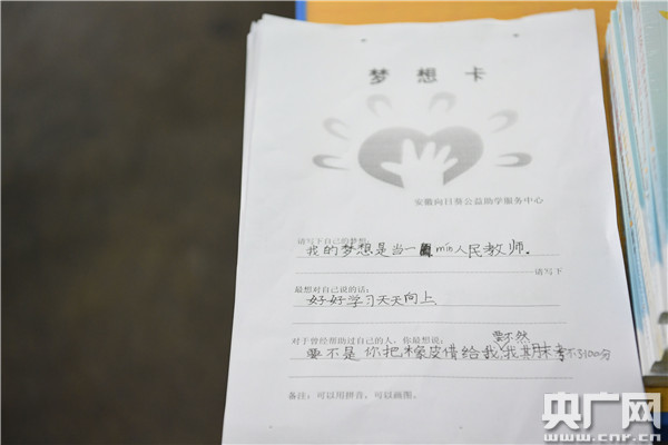 孩子們填寫“夢想卡”