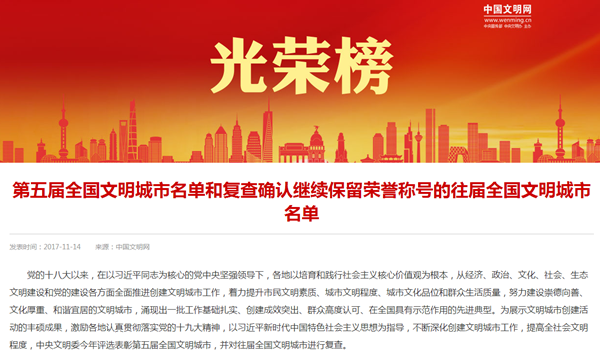 淮北、蚌埠、宣城、安慶當(dāng)選第五屆全國文明城市