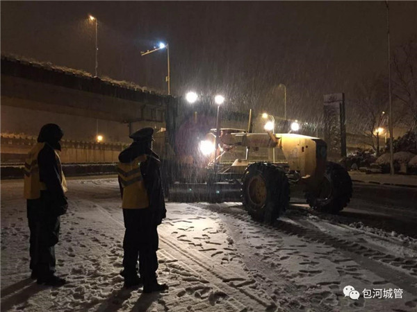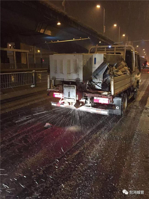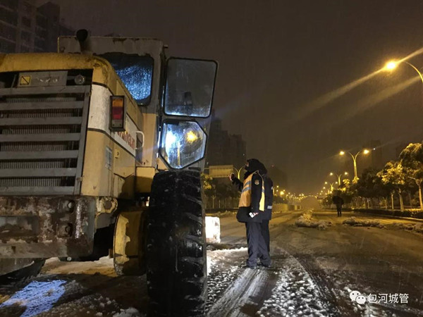 入夜以后,雪勢增強,路面出現(xiàn)積雪。