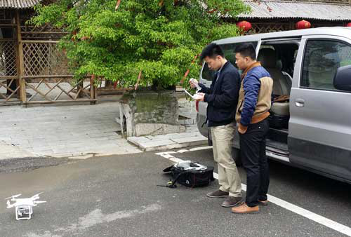 記者陳揚(yáng)熟練操縱無人機(jī)實(shí)現(xiàn)定點(diǎn)懸停(見上圖),讓飛機(jī)對正在建設(shè)中的凌家灘文化園區(qū)進(jìn)行環(huán)繞拍攝,跟蹤拍攝,從一個更加宏觀的角度看到園區(qū)的全貌!罢娴氖翘鸷场!毙』镒影l(fā)出這樣感慨。