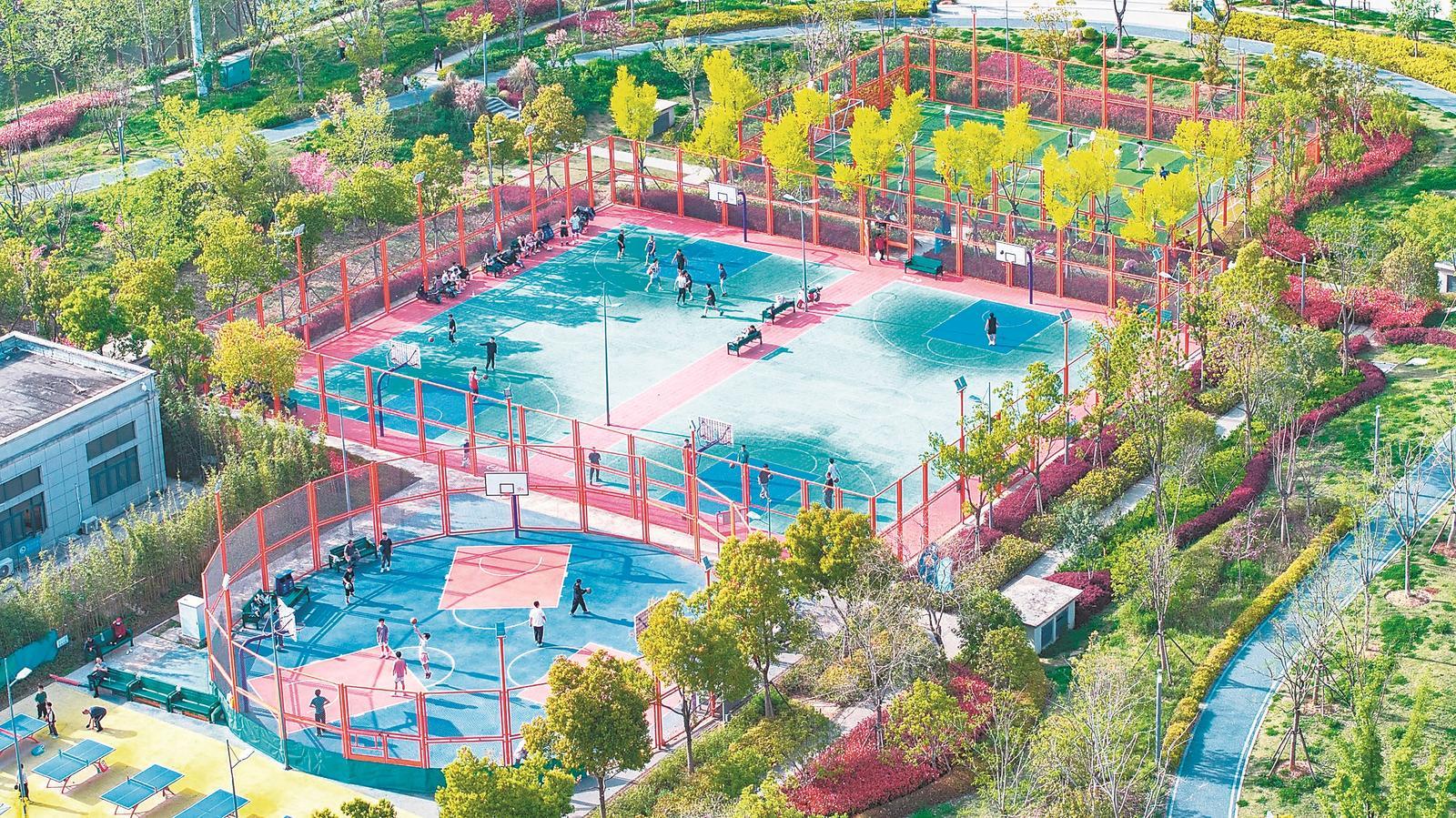 4月5日,合肥市南淝河體育公園,市民正在健身。