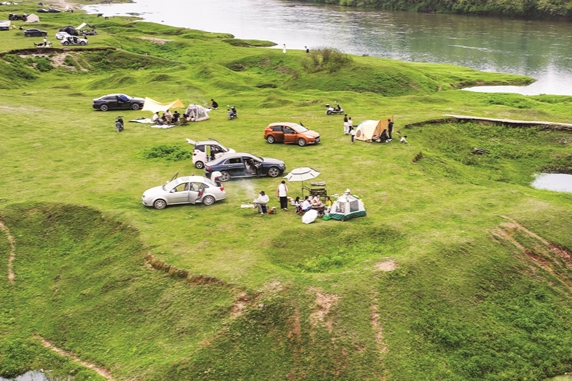 市民游客攜家?guī)в眩詭づ駷閺]、以清風為伴,在郊野間赴一場春日之約,盡享山水間的松弛與歡趣。