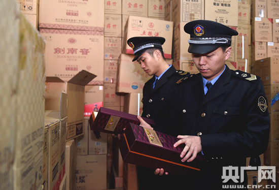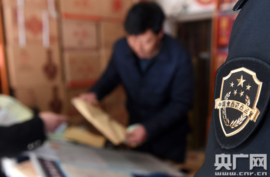 央廣網(wǎng)安徽頻道3月15日合肥消息 3月14日,在合肥市瑤海區(qū)一糖酒批發(fā)市場(chǎng),市場(chǎng)監(jiān)督管理局的執(zhí)法工作人員在對(duì)酒類等商品進(jìn)行安全檢查。