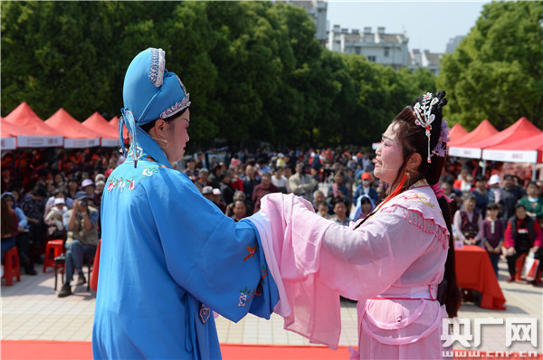 4月22日,演員正在表演經(jīng)典戲曲《黃梅歡歌》。