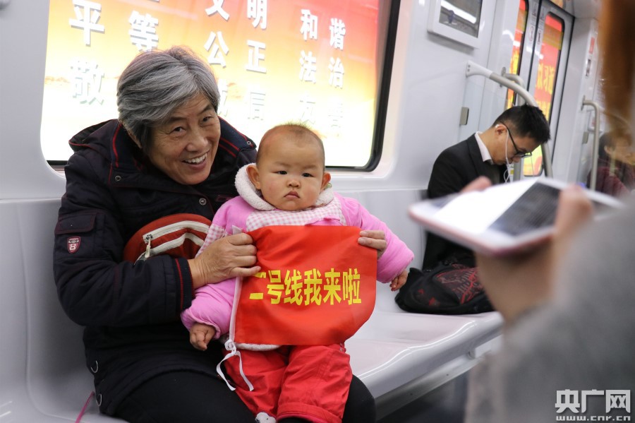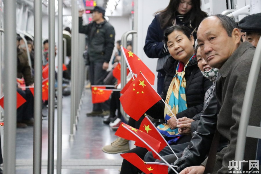 央廣網(wǎng)合肥12月6日消息(記者徐鵬)12月6日,是合肥地鐵2號(hào)線百萬市民大型試乘活動(dòng)的首日。如果說合肥地鐵1號(hào)線開創(chuàng)了這座城的“地鐵時(shí)代”,那么2號(hào)線則預(yù)示著合肥進(jìn)入“十字換乘時(shí)代”,地鐵不再是“一條線”,而是形成一張網(wǎng)。因此,不少合肥市民大早上便來到地鐵站,第一時(shí)間體驗(yàn)試乘體驗(yàn)。在一趟開往南崗方向的列車上,來自合肥七里站街道的120余名年過七旬的老人手持國(guó)旗,興奮激動(dòng)地體驗(yàn)。 -