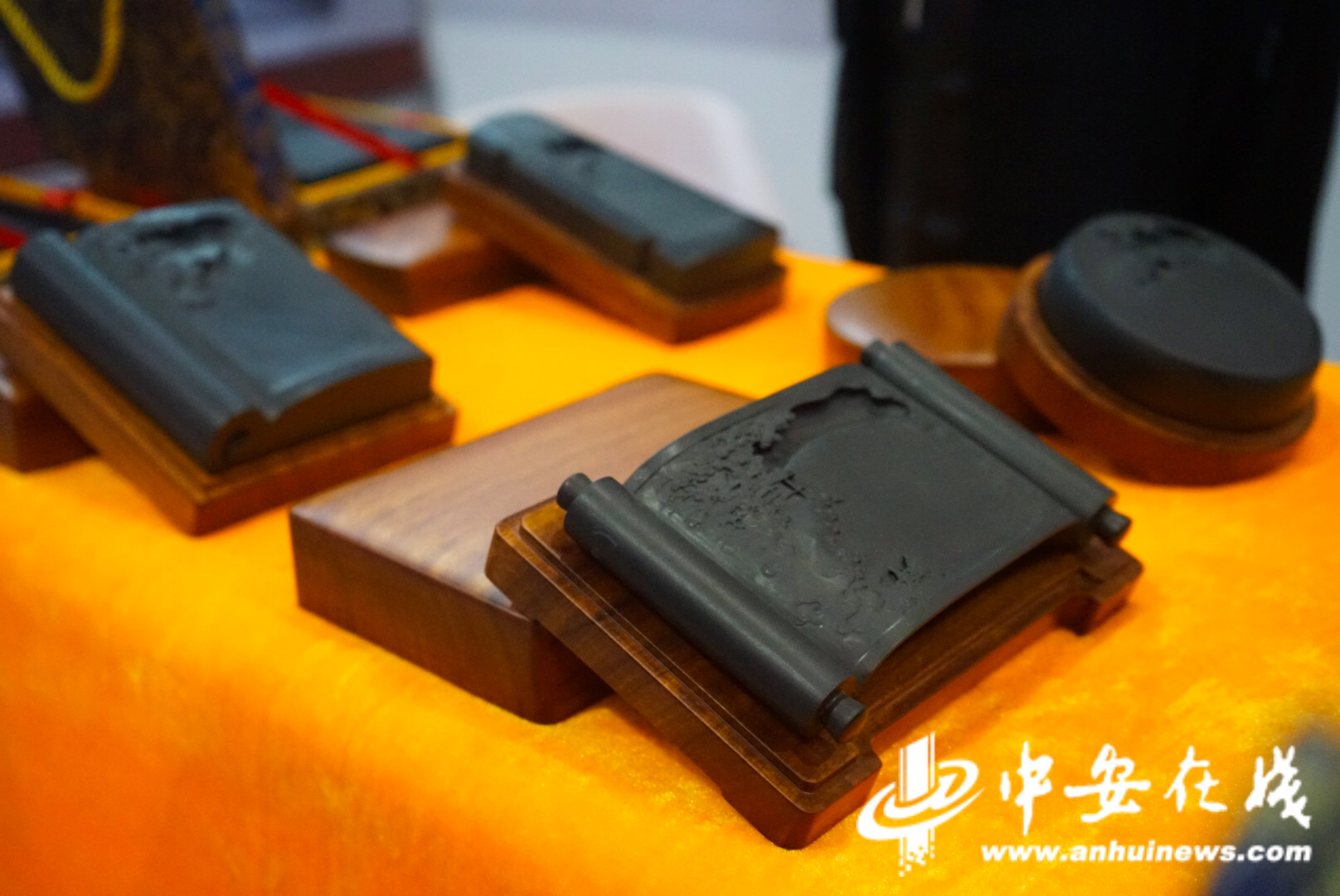 據(jù)黃山市古城歙硯有限公司的相關(guān)負(fù)責(zé)人胡彬介紹,這次來(lái)中博會(huì)展出的歙硯主要有黃鱔魚籽硯、金星硯、琴棋書畫硯等,其中,”琴棋書畫“硯獲得了2018年中國(guó)特色旅游商品大賽的銀獎(jiǎng)!啊倨鍟嫵帯郧、棋、書、畫做為設(shè)計(jì)元素,融合了鏤空雕、淺浮、平雕、半圓雕等多種雕刻方式,為了達(dá)到精細(xì)度和立體化的效果,師傅們都要拿著放大鏡來(lái)雕刻!庇浾吡私獾,完成這件作品需要一個(gè)月左右的時(shí)間。