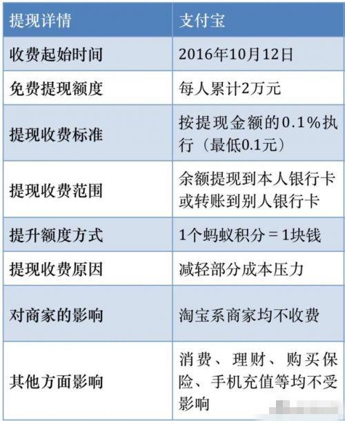 支付寶提現(xiàn)收費(fèi)情況概要