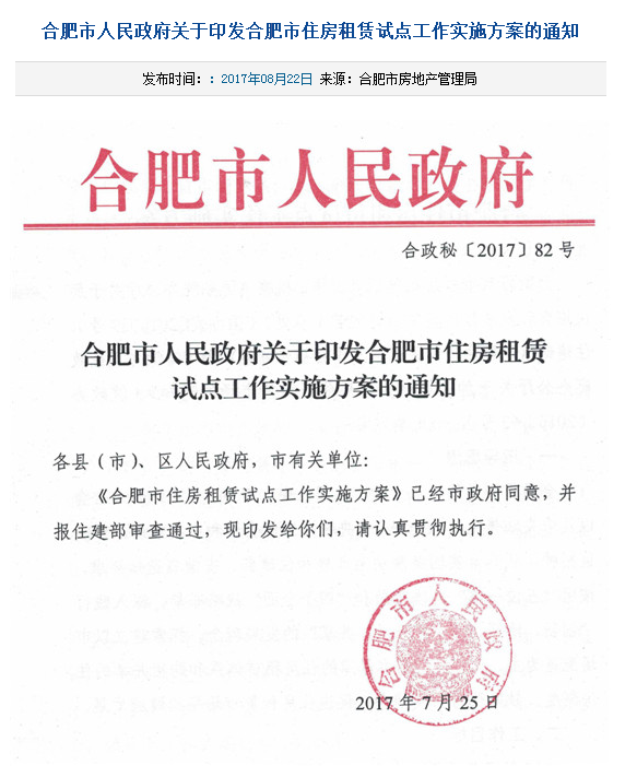 到2020年,合肥將基本形成供應主體多元、經(jīng)營服務(wù)規(guī)范、租賃關(guān)系穩(wěn)定的住房租賃市場體系,基本形成;尽⒋俟、多層級、可持續(xù)的住房租賃保障制度體系,基本建立國有租賃企業(yè)為引領(lǐng)、社會租賃企業(yè)為基礎(chǔ)的住房租賃服務(wù)市場,基本建成信息共享、功能完備、監(jiān)管有力的住房租賃交易服務(wù)監(jiān)管平臺。