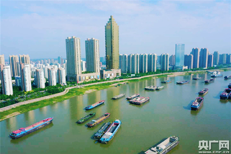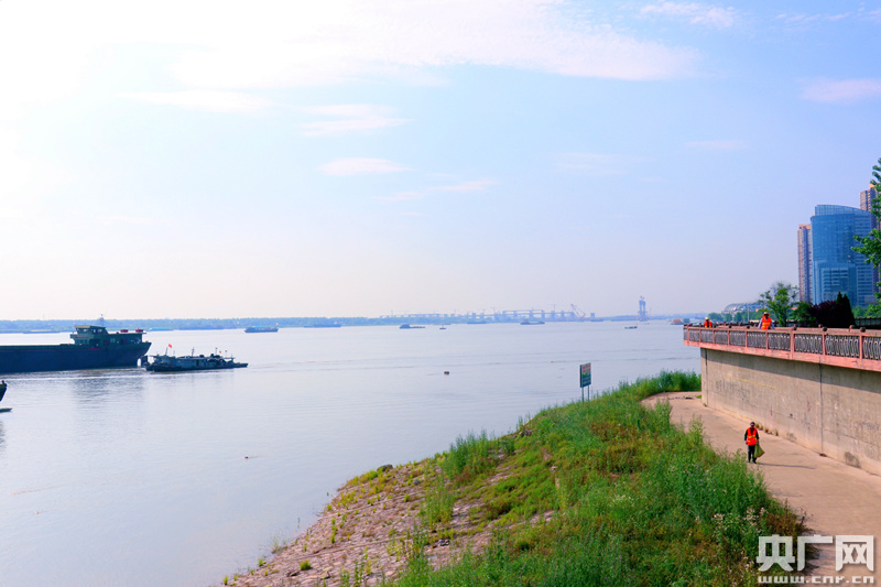 5月15日,初夏,傍晚,央廣記者登上蕪湖市弋江區(qū)箱子拐的防洪墻,只見在夕陽的映襯下,寬廣無際的長江岸線有序整潔,碧水藍天交相輝映,掠過江面的飛鳥與來往船舶交織,宛若一幅詩意畫卷。