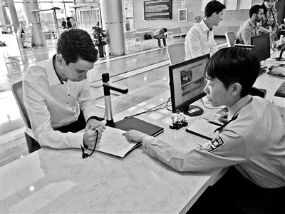外國(guó)人出入境服務(wù)大廳業(yè)務(wù)辦理中