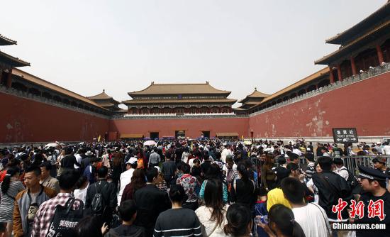 故宮門口游客眾多(資料圖)。中新社發(fā) 張浩 攝