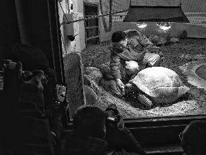 食蟻獸沒有絨毛,看似挺長的尾巴其實都是硬刺,專用來遮擋毒辣的陽光,因此他們最怕冷。食蟻獸的房間里既有暖氣又有浴霸,10歲的南南吃完早餐正在散步,一副愜意的樣子。象龜的家比食蟻獸家多了暖風設備,一進獸舍恍若來到熱風襲面的赤道地區(qū)(見圖)。飼養(yǎng)員說,這里的三頭象龜都來自塞舌爾,浴霸不僅供暖用,更起到“回家”的作用,“這些大家伙喜歡太陽的強光,浴霸的光對他們來說,就是太陽光,離不了!北y守宮和西非擬蜥這些爬行動物個頭都小巧,飼養(yǎng)員干脆把電線埋在“石頭”里,制作成發(fā)熱石,這些小家伙則更愿意趴在上面伸懶腰。