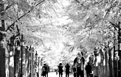 圓明園三園交界處近千米的銀杏大道迎來秋季最佳觀賞期攝影/本報記者 袁藝