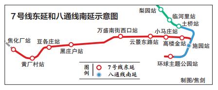 原標(biāo)題:分屬7號線東延和八通線南延,兩新線明年底開通