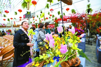 為適應(yīng)消費(fèi)者新的需求,各大花卉市場(chǎng)也在不斷提升服務(wù)水平。比如花鄉(xiāng)花卉創(chuàng)意園在室內(nèi)各處掛上風(fēng)鈴、五角星、燈籠等裝飾品,室內(nèi)分片設(shè)計(jì)成不同風(fēng)格的展區(qū),讓廣大園藝愛(ài)好者耳目一新,有愉悅的視覺(jué)享受;金源財(cái)富花卉市場(chǎng)雖然建設(shè)在地下,但是早早地就將大紅燈籠、中國(guó)結(jié)、福字、窗花等懸掛擺放在鮮花中間,并通過(guò)靚麗的彩燈裝點(diǎn)濃濃的年味兒;面積達(dá)3萬(wàn)平方米的房山良鄉(xiāng)花卉莊園打造了綠植廳和鮮花廳,消費(fèi)者可按照自己的需求進(jìn)行選購(gòu)。今年新加入年宵花展的東風(fēng)國(guó)際花卉市場(chǎng)既堅(jiān)持傳統(tǒng)又走國(guó)際化戰(zhàn)略,進(jìn)口許多國(guó)外的特色花卉如厄瓜多爾的玫瑰、以色列的盆栽火龍珠、荷蘭的小菊等,為年宵花市場(chǎng)注入了新的活力。