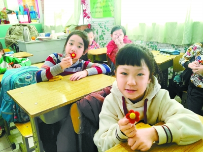 二年級1班的教室里,非遺技藝絨鳥(絨花)的傳承人蔡志偉正在給孩子們講授歷史:“冬天沒有花,老祖宗就發(fā)明了這種蠶絲絨做的花,看著跟真花一樣。后來又慢慢做起了絨鳥……”蔡志偉一邊說著,一邊給孩子們展示了隨身帶著的“寶盒”,里面有八枚精美的絨花作品,孩子們看得眼睛像是放出了光。