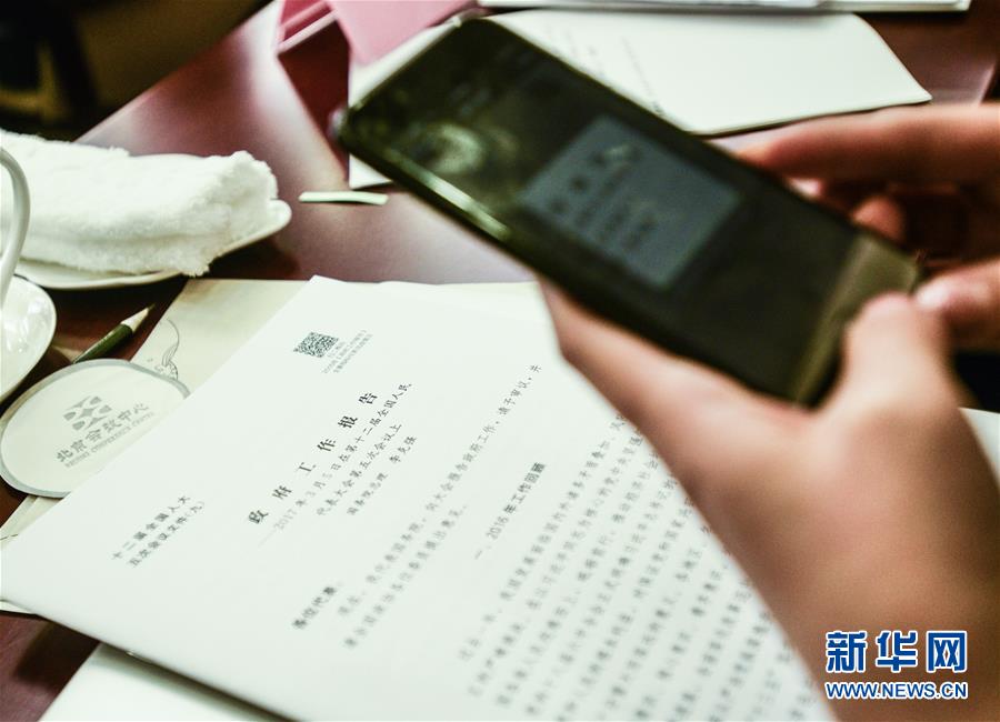 這份“互聯(lián)網(wǎng)+”的政府工作報(bào)告,讓很多人感覺(jué)到了便捷。新華社記者王建華 攝 3月5日,在北京會(huì)議中心,一名記者掃描政府工作報(bào)告文本上的二維碼獲取信息。今年政府工作報(bào)告文本上首次印上二維碼,并附有文字說(shuō)明:“掃二維碼 2016年《政府工作報(bào)告》主要指標(biāo)任務(wù)完成情況”。用手機(jī)掃描二維碼,會(huì)掃出政府工作報(bào)告中有關(guān)主要指標(biāo)任務(wù)完成情況的各項(xiàng)數(shù)據(jù)。 -