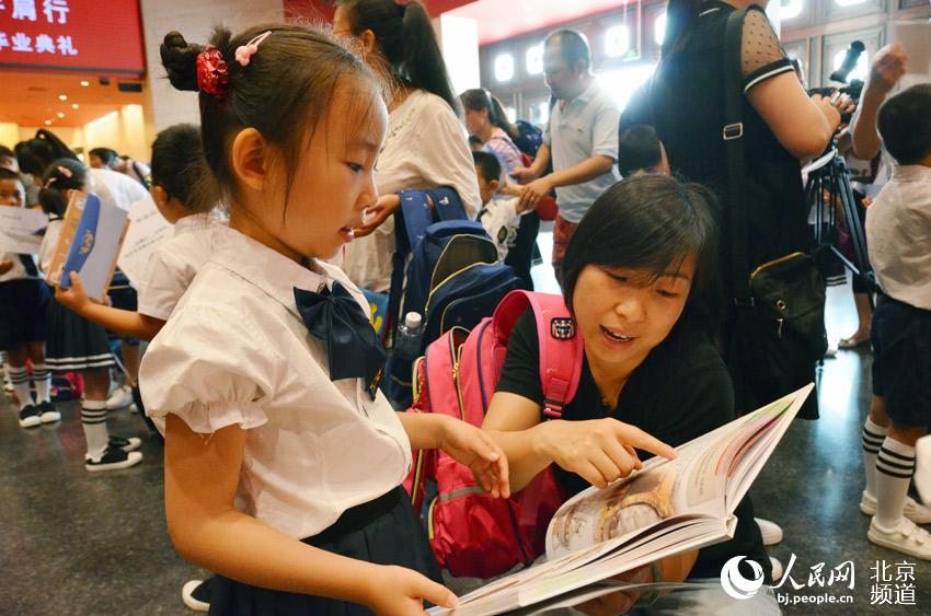家長(zhǎng)們給孩子們送上了書籍當(dāng)做畢業(yè)禮物。人民網(wǎng)尹星云 攝 -
