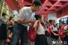 家長(zhǎng)們?yōu)楹⒆觽儽成狭藭,希望他們能夠帶著熱?ài)祖國(guó)的心踏進(jìn)小學(xué)的校門。人民網(wǎng)尹星云 攝 -