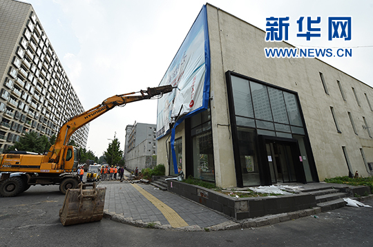 7月25日,工人在拆除違法建設(shè)。