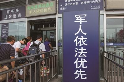 北京站已將售票廳8號窗口設(shè)為軍人優(yōu)先購票窗口,并在廣場西側(cè)38號改簽窗口和30號退票窗口,為持證軍人優(yōu)先辦理業(yè)務(wù)。同時,利用進站驗票口的31號窗口和4-5號窗口分別作為軍人優(yōu)先進站通道,北京站還在候車大廳一層南側(cè)設(shè)置了面積約為40平方米的軍人候車專區(qū),并安排專人服務(wù)。