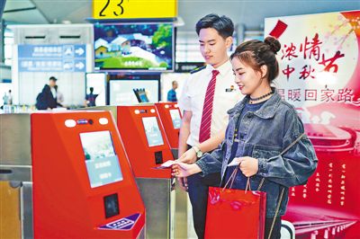 21日,一名去往天津的旅客正在北京南站“刷臉”乘車。當日,北京南站啟用全國首批“實名制快速驗證閘機通道”,旅客只需刷身份證并刷臉就可完成“票、證、人”合一的全部驗證,并完成檢票直接乘車,團圓之路更加順暢。