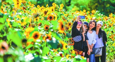 和趙女士一樣帶孩子來體驗(yàn)農(nóng)村生活的還不少,朝陽區(qū)的馬勇先生帶著老婆孩子慕名來看向日葵花海,“順義的萬畝向日葵花海挺出名的,女兒去年看有同學(xué)來過了,發(fā)在同學(xué)群里的照片非常漂亮,今年還沒等放假,就規(guī)劃好了中秋節(jié)來看向日葵花海,正好還碰上農(nóng)民豐收節(jié),可玩的項(xiàng)目更豐富了!