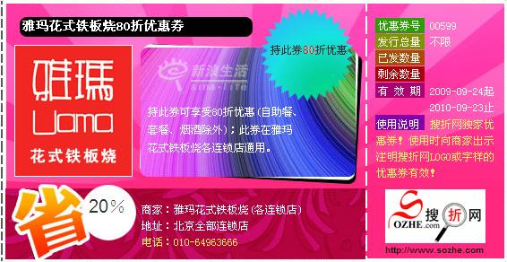 提示:1.請將此優(yōu)惠券打印使用;2.除特殊注明外,本優(yōu)惠不能與其他優(yōu)惠券同時享受;3.本優(yōu)惠最終解釋權歸商家所有,如有疑問請與商家聯(lián)系。此信息僅供參考,建議您在使用前進行確認。