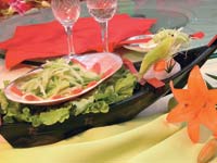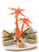 推薦理由:蘆薈是很好的天然美容品,就連古埃及女王克婁巴特拉都熱衷于蘆薈美容。蘆薈做菜也一樣具有美容功效,并且在口感方面也是很受大眾歡迎。這道脆炸蘆薈美容養(yǎng)顏,有降低膽固醇的功效,并且還可消除疲勞、抗衰老。配以紅蘿卜雕刻出來的椰子樹,感覺像是又來到海邊,清爽、涼快。