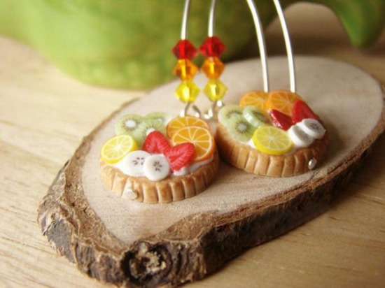 巧克力曲奇、水果蛋糕、海鮮披薩、羊角面包......哇,真得是一個(gè)個(gè)都令人垂涎欲滴呀!看到這些“袖珍美食”,很難不被它們惟妙惟肖的外形和漂亮的色彩迷惑,誤以為是真正的美食。其實(shí)它們都是用軟陶制作的哦,每個(gè)都只有實(shí)物的 1/12大。更令人驚訝的它們還是項(xiàng)鏈和耳釘!戴在身上,估計(jì)能使觀者信以為真呢。