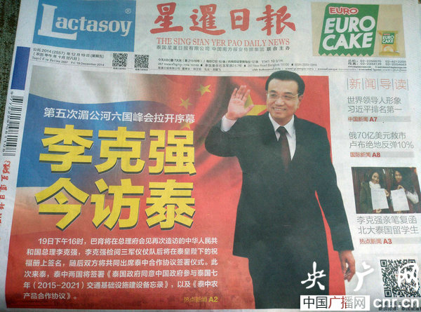 泰國媒體高度關(guān)注李克強總理泰國行