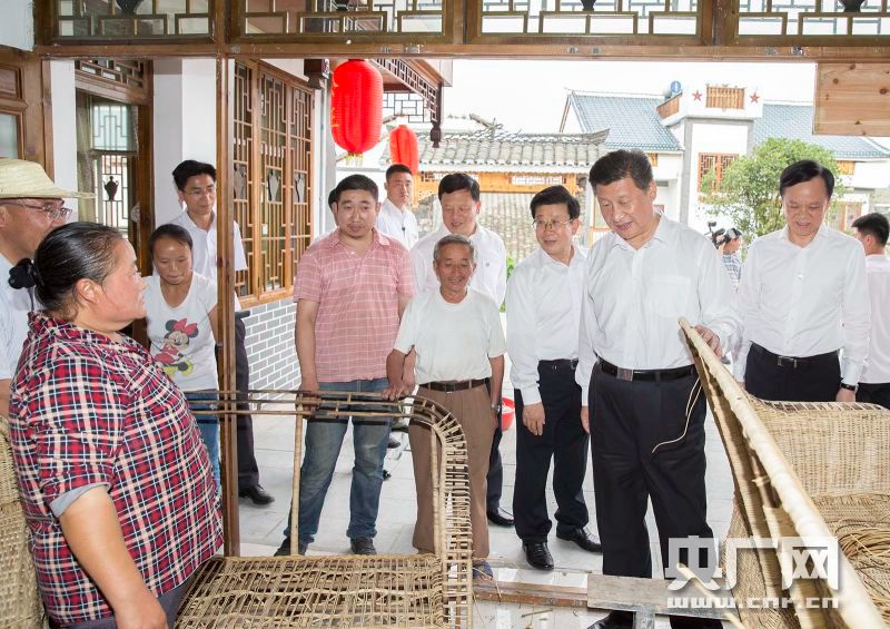 央廣網(wǎng)遵義6月16日消息(記者馬闖)路旁田里,連片的向日葵花開得正艷,習(xí)近平下車駐足欣賞。當(dāng)?shù)馗刹扛嬖V總書記,伴隨美麗鄉(xiāng)村建設(shè),山花繁茂的花茂村成了婚紗拍照地,不少附近的市民結(jié)婚都到這來。沿著土墻和木欄相伴的鄉(xiāng)村小徑,習(xí)近平邊走邊詢問當(dāng)?shù)孛撠氈赂磺闆r?吹锦r花盛開,道路兩旁的房子干凈整潔,他有感而發(fā)地說:“怪不得大家都來,在這里找到鄉(xiāng)愁了。”聽說水電路都解決了,他又關(guān)切地詢問衛(wèi)生情況?吹綆孜淮迕裾诼愤叿孔永锞幪僖危哌M去問:“編一個多長時間?”聽說一個三人座藤椅只要編4天,能賣1200塊錢,他說:“如果銷路好,那收入還挺高!