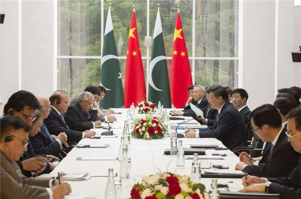 習近平指出,此次烏法峰會啟動了巴基斯坦加入上海合作組織程序。中方歡迎巴基斯坦加入上合組織,愿同巴方在上合組織框架內保持密切合作。中方贊賞巴方為推動阿富汗和平進程所作努力,愿同巴方一道,為阿富汗早日實現(xiàn)民族和解和國家和平發(fā)揮建設性作用。