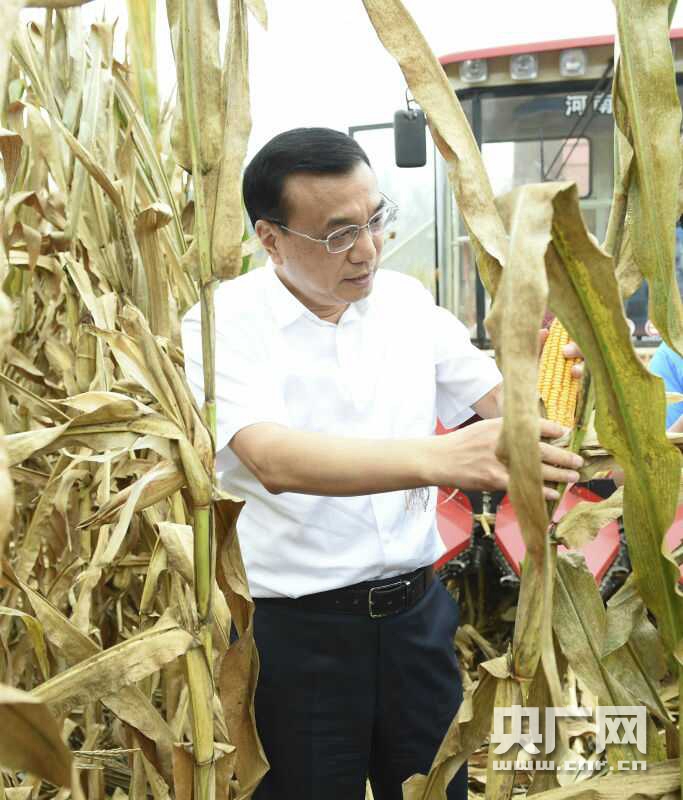 央廣網(wǎng)長(zhǎng)葛9月24日消息 踩著雨后泥濘的土地,李克強(qiáng)24日到河南長(zhǎng)葛老城鎮(zhèn)西關(guān)村高標(biāo)準(zhǔn)農(nóng)田察看玉米收成,考察農(nóng)業(yè)現(xiàn)代化及土地流轉(zhuǎn)情況?偫韯冮_玉米檢驗(yàn)新品種,登上收割機(jī)了解機(jī)械性能。他強(qiáng)調(diào),要從我國(guó)農(nóng)村實(shí)際出發(fā),發(fā)展多種形式適度規(guī)模經(jīng)營(yíng)。