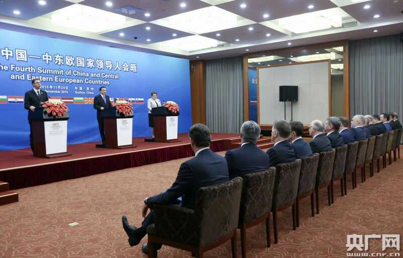 央廣網蘇州11月24日消息(記者馬喆)第四次中國-中東歐國家領導人會晤后,李克強總理與上次東道主塞爾維亞總理武契奇、明年東道主拉脫維亞總理斯特勞尤馬共見記者。其他中東歐14國領導人臺下就坐,F(xiàn)場一外交官驚嘆道,這場記者會出席領導人級別、規(guī)模堪稱“史無前例、史上最強”。 -
