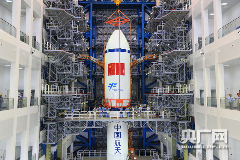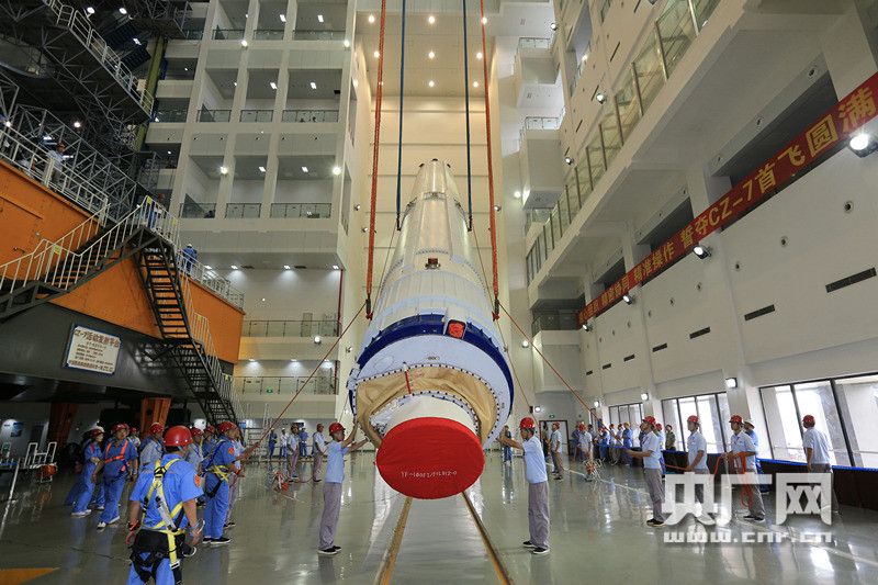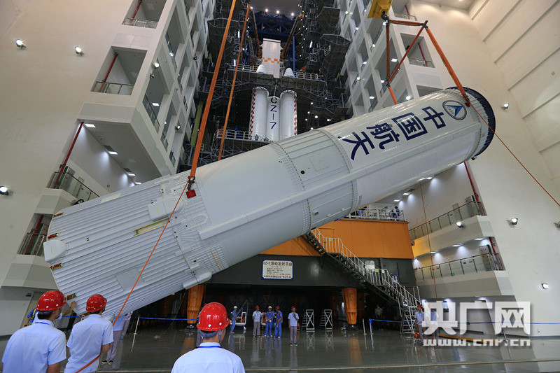 6月14日,長(zhǎng)征七號(hào)火箭與整流罩對(duì)接。 -