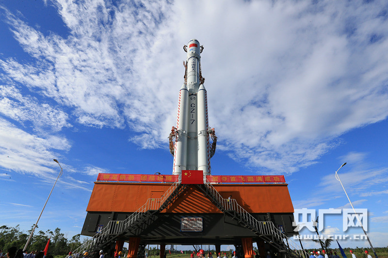 5月14日,長(zhǎng)征七號(hào)火箭在發(fā)射場(chǎng)順利開箱卸載。屠海超攝 -