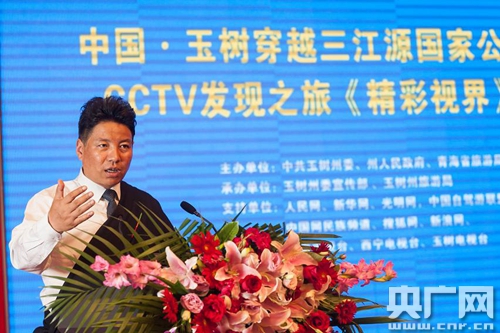 發(fā)布會(huì)前,玉樹旅游局局長(zhǎng)阿夏永紅接受了本臺(tái)記者的獨(dú)家專訪,他指出:習(xí)近平總書記在今年全國“兩會(huì)”青海代表團(tuán)審議時(shí),專門強(qiáng)調(diào)“青海一定要堅(jiān)持生態(tài)保護(hù)優(yōu)先,扎扎實(shí)實(shí)推進(jìn)生態(tài)環(huán)境保護(hù),像保護(hù)眼睛一樣保護(hù)生態(tài)環(huán)境,像對(duì)待生命一樣對(duì)待生態(tài)環(huán)境”。為此,中央專門批準(zhǔn)青海省開展三江源國家公園體制試點(diǎn)。他熱情洋溢地介紹說,玉樹州是長(zhǎng)江、黃河、瀾滄江的發(fā)源地,是名副其實(shí)的“三江之源”、“中華水塔”,在青海省乃至全國的生態(tài)環(huán)境保護(hù)和建設(shè)中都具有不可替代的作用。新成立的三江源國家公園,涉及玉樹州的雜多、治多和曲麻萊3個(gè)縣9個(gè)鄉(xiāng)鎮(zhèn)34個(gè)行政村(牧委會(huì)),面積達(dá)到了10.4萬平方公里,約占公園總面積的84.48%,玉樹總面積的38.95%!