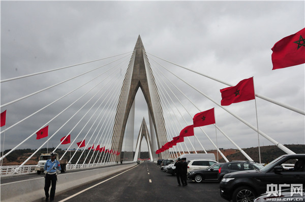 7日下午15時(shí),摩洛哥有關(guān)方面以布里格里格河谷斜拉橋橋面為主會(huì)場(chǎng),舉行了拉巴特繞城高速公路全面建成通車的慶典儀式。儀式上,摩洛哥國王穆罕穆德六世親自為通車竣工剪彩,命名該橋?yàn)椤澳潞蹦碌铝馈贝髽。并向中國中鐵大橋局建設(shè)者表示由衷地感謝,高度贊揚(yáng)了該單位為摩洛哥建設(shè)了一項(xiàng)精品工程,圓了摩洛哥人民近30年來的夢(mèng)想。隨后,在現(xiàn)場(chǎng)人群的歡呼聲中,穆罕穆德六世宣布繞城高速公路建成通車,兩個(gè)方向的穿梭車流駛過了這座摩洛哥人民的“勝利之門”、“理想之門”。