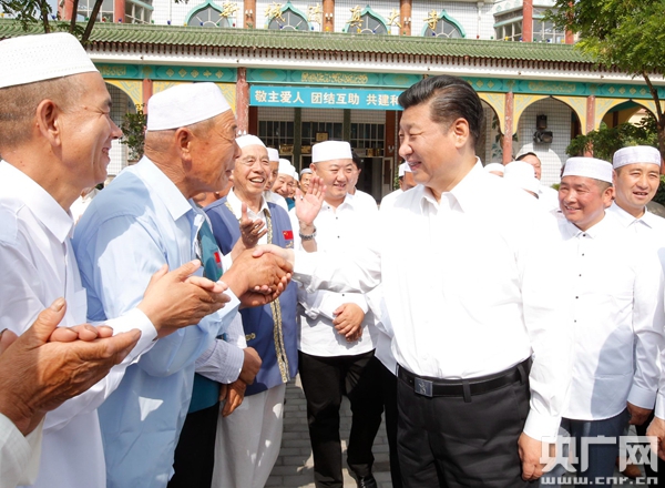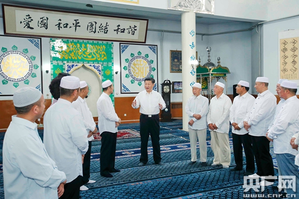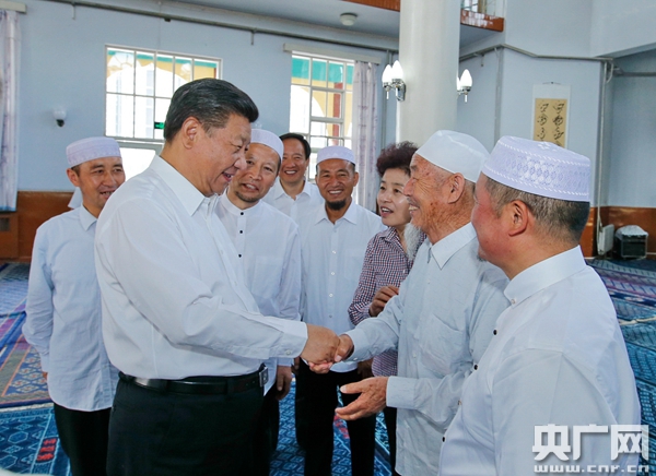 央廣網(wǎng)銀川7月19日消息(記者劉樂)習(xí)近平總書記19日上午來到寧夏回族自治區(qū)銀川市新城清真寺了解宗教活動開展情況。在禮拜大殿,習(xí)近平與寧夏伊斯蘭教界人士親切交流,通過他們向廣大穆斯林群眾致以親切問候和良好祝愿。習(xí)近平說,我國的各民族和宗教是在5000多年的文明史中孕育發(fā)展起來的,只有落地生根才能生生不息。習(xí)近平希望大家繼續(xù)發(fā)揚(yáng)愛國愛教傳統(tǒng),在脫貧致富奔小康的道路上發(fā)揮積極作用。在場的伊斯蘭教界人士表示,將認(rèn)真貫徹落實(shí)全國宗教工作會議精神,既念好古蘭經(jīng),又念好致富經(jīng),為國家發(fā)展?fàn)I造和諧的環(huán)境。