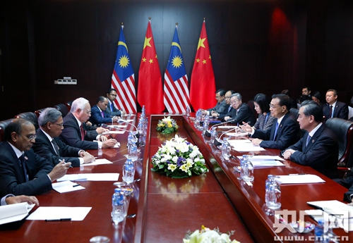 李克強(qiáng)表示,中馬是友好近鄰和相互信賴的合作伙伴,兩國關(guān)系不斷取得新進(jìn)展,重點(diǎn)領(lǐng)域合作順利推進(jìn)。中方高度重視發(fā)展同馬來西亞的關(guān)系,愿同馬方再接再厲,推動(dòng)兩國關(guān)系和各領(lǐng)域務(wù)實(shí)合作再上新臺(tái)階。