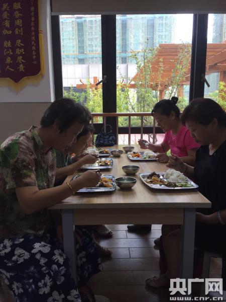 記者走進(jìn)位于南京鼓樓區(qū)江東街道睿城社區(qū)的助餐點(diǎn),正值晚餐時(shí)分,老人們正排隊(duì)打飯。記者身邊有四位老人正圍在桌邊在享用著晚餐。得知記者來(lái)意后,老人們紛紛向記者表示,“社區(qū)里的飯菜衛(wèi)生便宜”、“每頓只用花7塊錢”、“上門送餐也只用花一塊錢”。