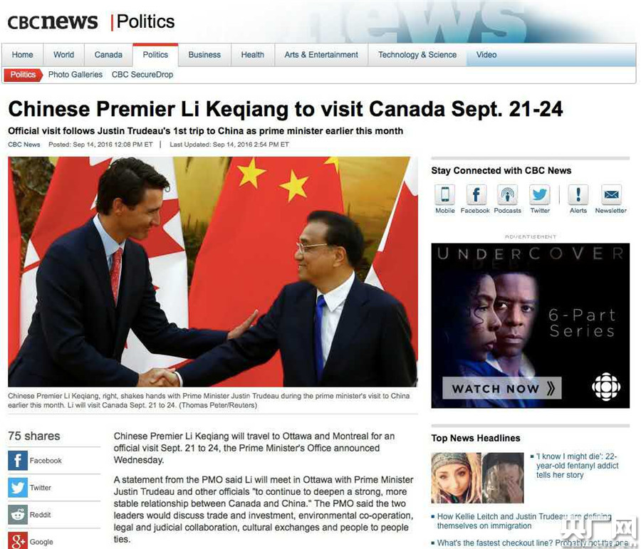 • 李克強總理將于9月21日-24日訪問加拿大。(央廣網(wǎng)記者 馬喆 攝)