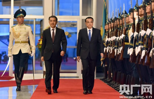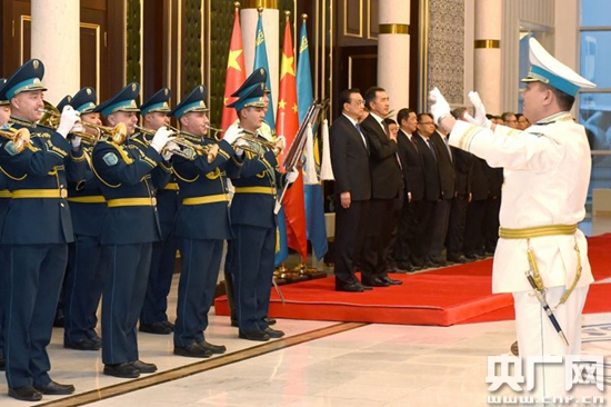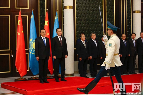央廣網(wǎng)阿斯塔納11月3日消息(記者馮悅 邢斯嘉)共同出席上合組織總理會(huì)晤后,哈薩克斯坦總理薩金塔耶夫3日下午先行回國(guó),在機(jī)場(chǎng)迎候隨后抵達(dá)的李克強(qiáng)總理,并為李克強(qiáng)舉行隆重歡迎儀式。兩國(guó)總理相互介紹雙方主要官員后登上檢閱臺(tái),軍樂隊(duì)先后奏響中哈兩國(guó)國(guó)歌,李克強(qiáng)在薩金塔耶夫陪同下檢閱儀仗隊(duì)。