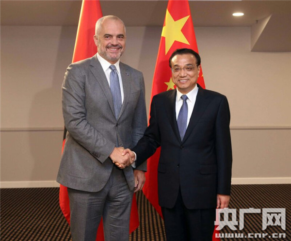 央廣網(wǎng)里加11月5日消息(記者馮悅)國務(wù)院總理李克強4日下午在里加下榻飯店會見阿爾巴尼亞總理拉馬。