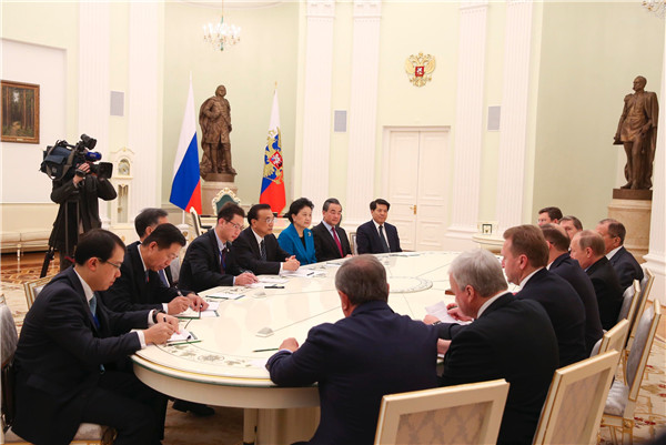 李克強指出,中方愿同俄方深挖合作潛力,拓寬合作領(lǐng)域。鞏固雙邊貿(mào)易企穩(wěn)回升勢頭,推進石油、天然氣、民用核能、航空航天等領(lǐng)域大項目合作,加強金融、基礎(chǔ)設(shè)施建設(shè)合作,推動兩國中小企業(yè)深化合作,在激發(fā)市場活力的同時,也為雙方大企業(yè)合作提供必要配套和支持。提升人文交流水平,夯實兩國關(guān)系的民意基礎(chǔ)。
