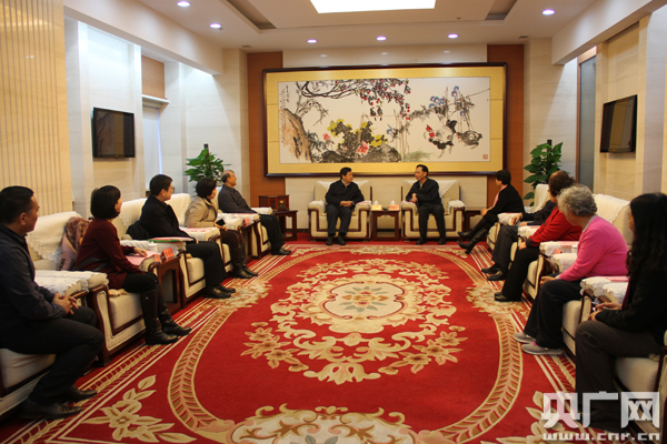 中央人民廣播電臺(tái)臺(tái)長(zhǎng)閻曉明與教育部副部長(zhǎng)、國(guó)家語(yǔ)委主任杜占元會(huì)談(央廣網(wǎng)記者仇劍梅 攝)