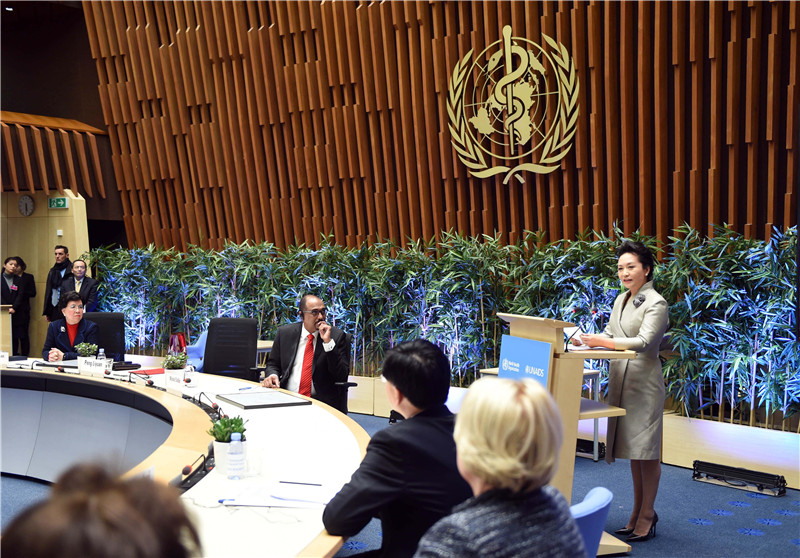 1月18日,國(guó)家主席習(xí)近平夫人、世界衛(wèi)生組織結(jié)核病和艾滋病防治親善大使彭麗媛應(yīng)世界衛(wèi)生組織總干事陳馮富珍和聯(lián)合國(guó)艾滋病規(guī)劃署執(zhí)行主任西迪貝邀請(qǐng),在瑞士日內(nèi)瓦出席為她舉行的親善大使任期續(xù)延暨頒獎(jiǎng)儀式。這是彭麗媛在儀式上致辭。(新華社記者謝環(huán)馳攝)