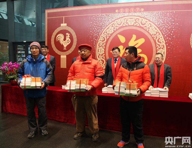 央廣網(wǎng)北京1月30日消息(記者張庶卓)2017年春節(jié)期間,國家圖書館準備了豐富的新春活動。初一上午9點,國家圖書館館長韓永進,副館長魏大威、張志清、王軍,館長助理汪東波以及相關(guān)部門主任在總館北區(qū)二層大廳喜迎雞年第一批到館讀者。韓永進讀者拜年,并向前三位贈送第十一屆文津圖書獎獲獎圖書。